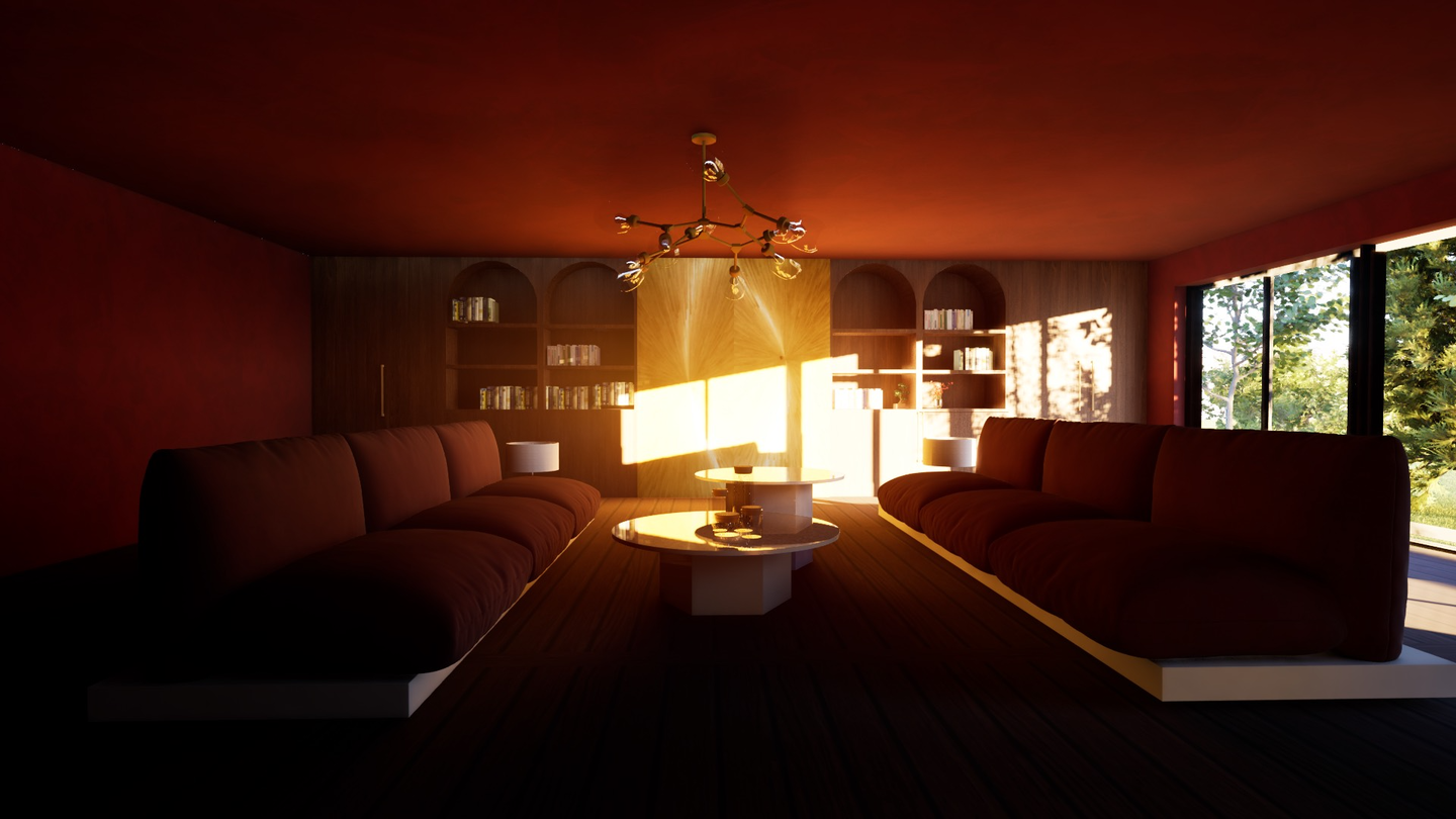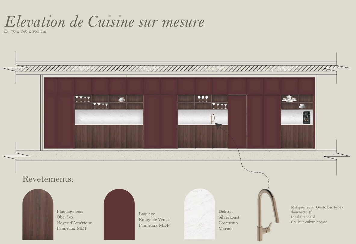 L’ambiance intérieure s’appuie sur une palette sobre et contrastée, mêlant des tons neutres à des accents plus profonds, et