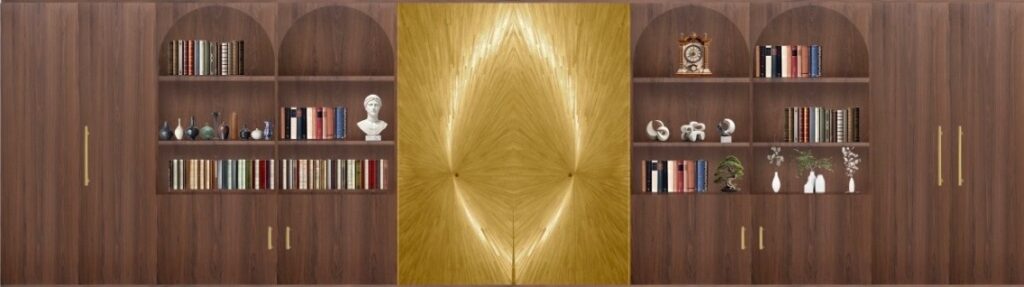 centrale dans le projet, notamment à travers l’intégration de marqueterie de paille sur le mobilier sur mesure de l’entrée,